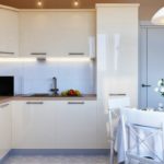 - Светлые стены и светлый гарнитур с тёмной столешницей, как показано на фото ниже.