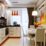 - Возможность увеличить функциональность кухни за счёт переноса стола и стульев в зал.