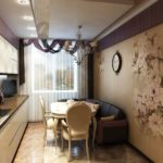 Но в нём можно поиграть и тёмными расцветками, расставляя акценты не в центре помещения, а по краям, тем самым подчёркивая концепцию дизайна комнаты. Размещать при этом мебель придётся с учётом цветового тона. Поэтому особое внимание нужно уделить и цветовому оформлению кухонного гарнитура. В этом случае можно поступить так: