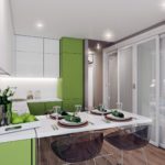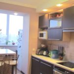 В принципе, вместо барной стойки можно установить и сам обеденный стол, благо новый объем совмещенного помещения сделать это теперь позволяет. Единственное – стол должен быть узким и прямоугольным, чтобы он собой занимал именно участок снесенной стены. Вместо стойки и стола можно установить диван, около него журнальный столик и парочку кресел, делая из предметов мебели своеобразный квадрат, который хорошо организует зону отдыха.