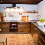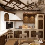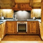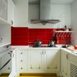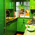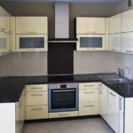 Гарнитур можно установить и по типу угловой конструкции, закрывая угол помещения. Тоже неплохой вариант, который помогает задействовать именно угол. Он часто вылетает из функционального наполнения кухонного пространства. Именно в него можно установить трапециевидную мойку. Это не требование, это рекомендация, которая позволяет увеличить функциональность.