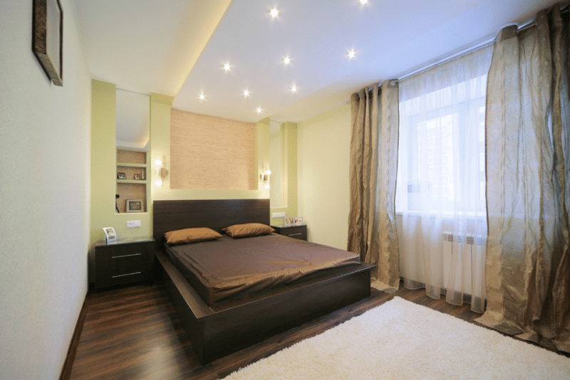 Потолок из гипсокартона в спальне: отборные фото идеи