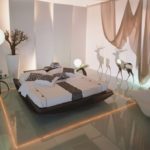 - Повысить потолок позволяют обои в вертикальную полоску или с рисунком в ромбик. Но будьте осторожны с полосками, всегда присутствует вероятность сужения.