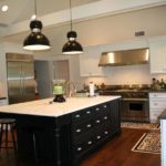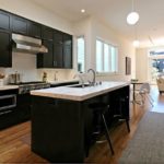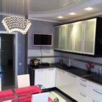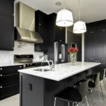 Обратите внимание, неправильное сочетание цветов приведёт к тому, что помещение станет мрачным и депрессивным. Чтобы этого избежать, полы оформляют в чёрном цвете, выбирают комбинированный вариант исполнения глянцевого кухонного гарнитура, у которого верхние фасады фиолетового цвета, а нижние – чёрного. Нельзя в кухне клеить чёрные обои, или выкрашивать в подобный цвет потолок. Если удастся подобрать рулоны с сюжетом, в котором будут присутствовать фиолетовые и чёрные краски, общая картинка интерьера сложится как нельзя лучше.