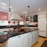 - Бело-фиолетовые кухни – наиболее встречающаяся идея реализации описываемого пространства. Белый цвет – хорошее дополнение для любой другой цветовой гамме. Он позволяет играть на контрасте и создавать нарядные кухни. Чаще всего в белый цвет выкрашиваются стены, на их фоне прекрасно смотрятся сиреневые кухонные гарнитуры.