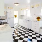 - Класть на пол кафель фиолетового цвета не стоит, если дизайн кухни предполагает использование такого вида отделки, важно разбавлять монохромность светлыми тонами. Вот почему при покупке напольного покрытия стоит отдавать предпочтение той плитке, чей цвет разбавлен бежевыми или серыми вкраплениями. Такой вариант подойдёт только для оформления пола в просторных кухнях.
