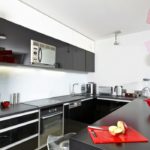 Обратите внимание! Сильно влияют на выбор планировки расположение окон. Если есть окно в зоне кухни, пространство под ним необходимо использовать максимально рационально. Для этого подоконник становится частью рабочей столешницы, ее продолжением. Новое пространство используется по-разному: кто-то устанавливает тут мойку, кто-то в небольшое пространство умудряется монтировать на подоконник детали откидного столика. Если окна располагаются одно в кухне, другое в гостиной, для оформления рабочей зоны выбирается г-образный гарнитур.