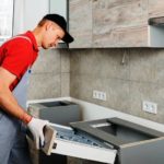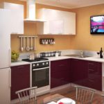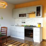 Целесообразно выполнять проектирование кухни в хрущевке, в доме старой застройки, с учетом правила треугольника (холодильник – мойка – плита). Самый оптимальный вариант, когда расстояние между перечисленными предметами составляет не более 2 метров, и не менее 1,5 м. Реализовать его на шести квадратных метрах не так уж и просто. Но если постараться, можно уместить на границе кухонного гарнитура даже стиралку. Для этого важно выбрать подходящую технику.