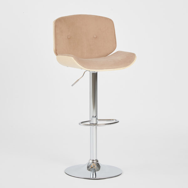 Эргономичный барный стул Almera — оригинальный предмет интерьера, способный кардинально преобразить домашнюю обстановку и создать на кухне теплую атмосферу для дружеских встреч. Контрастное сочетание блестящего, отполированного до зеркального блеска металла и матовой текстильной обивки, декоративные пуговицы на спинке, обтекаемые мягкие формы делают эту модель особенно привлекательной. Для удобства эксплуатации предусмотрена возможность регулировки высоты посадки с помощью рычага, расположенного под сиденьем. Круглая подставка послужит удобной опорой для ног.