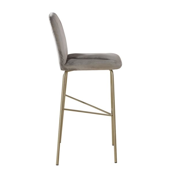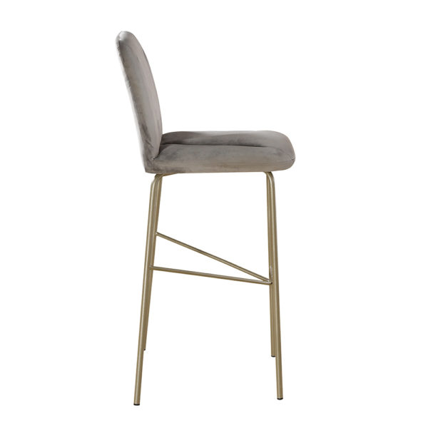 Барный стул Axel внесет в интерьер изящество и легкость. Со стороны может показаться, что сидящий на нем парит в невесомости, но это всего лишь иллюзия: каркас модели сделан из высокопрочного металла, а конструкция устойчива и надежна. Мягкая спинка расположена под небольшим углом для удобства посадки, а ноги можно свободно расположить на перекладине. Тканевая обивка серебристо-серого цвета, украшенная глубокой V-образной строчкой, отличается износостойкостью и простотой очистки, а ее бархатистая поверхность необычайно приятна на ощупь. Изящные золотистые ножки оснащены специальными накладками-протекторами для защиты напольного покрытия от царапин.