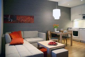 Мебель на кухне лучше всего распределить по её функциональным группам: шкафы с моечной раковиной в одну часть, кухонный стол со стульями – в другую. Причем стол и стулья, если не очень много места, лучше всего выбрать под угловой тип.